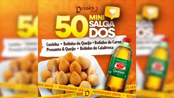 Compre 50 Salgados de festa variados e ganhe guarana antartica de 1 litro